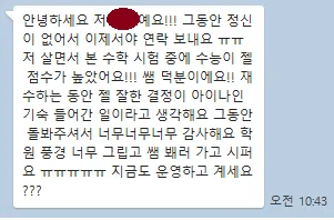 학생이 보내온 문자, 수학성적 수능점수가 가장 높았음
